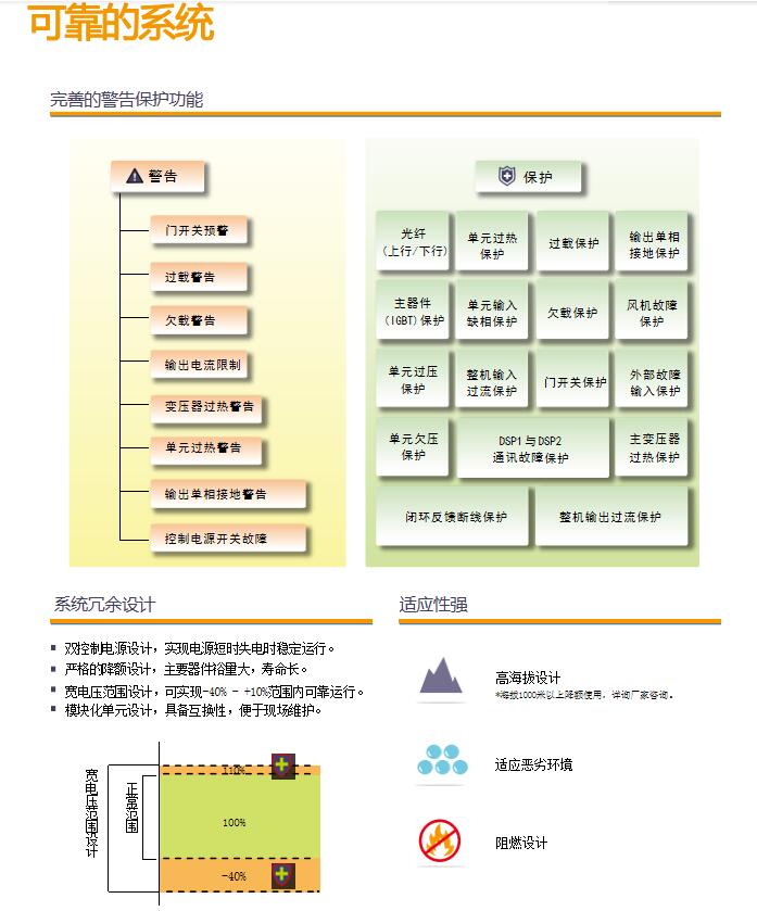 輸出采用載波移相PWM,無需輸出濾波器。輸出諧波滿足 GB及IEEE標準,dv/dt小,對電機無特殊要求。
